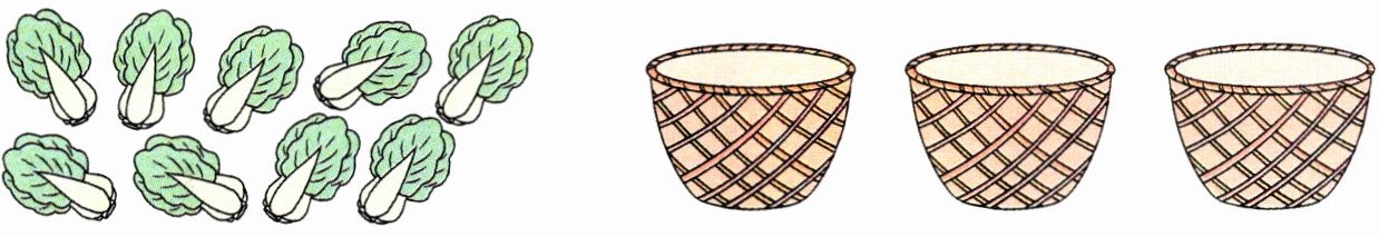 有( )棵白菜,( )个筐子。平均每筐装多少棵?