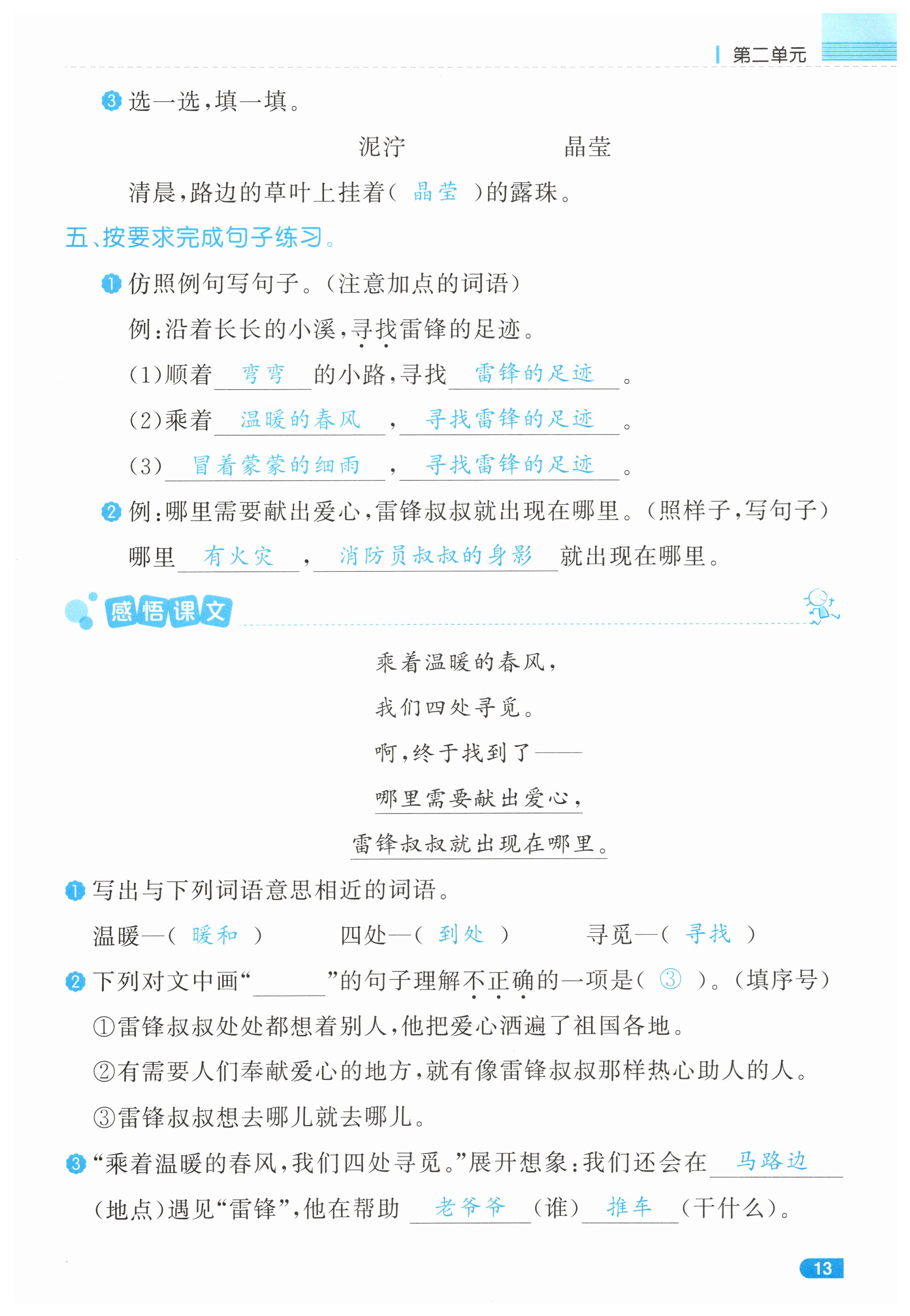 注:目前有些书本章节名称可能整理的还不是很完善,但都是按照顺序排列的,请同学们按照顺序仔细查找。练习册 2025年小学学习好帮手二年级语文下册人教版 答案主要是用来给同学们做完题方便对答案用的,请勿直接抄袭。