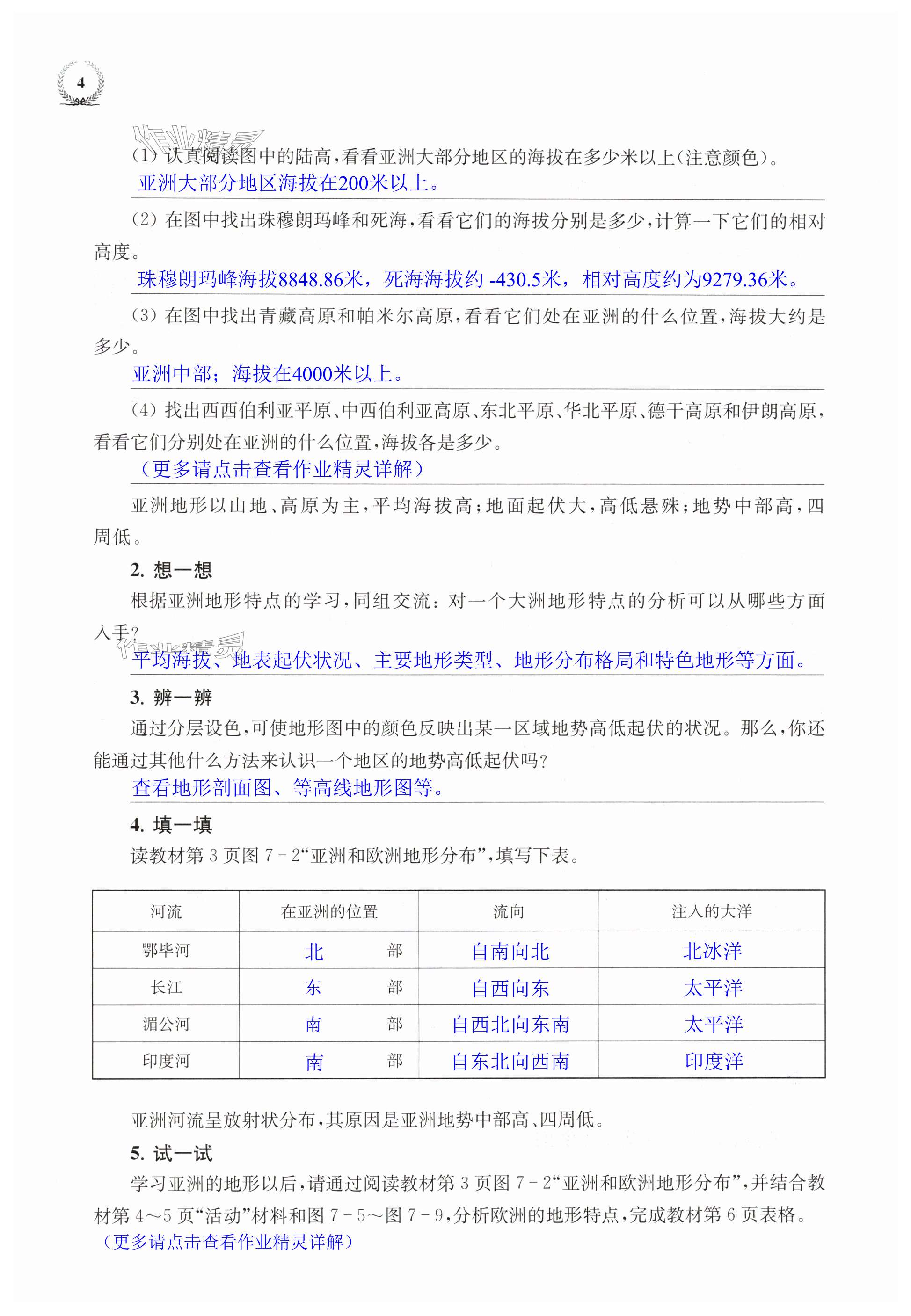 注:目前有些书本章节名称可能整理的还不是很完善,但都是按照顺序排列的,请同学们按照顺序仔细查找。练习册 2025年探究与训练七年级地理下册湘教版 答案主要是用来给同学们做完题方便对答案用的,请勿直接抄袭。