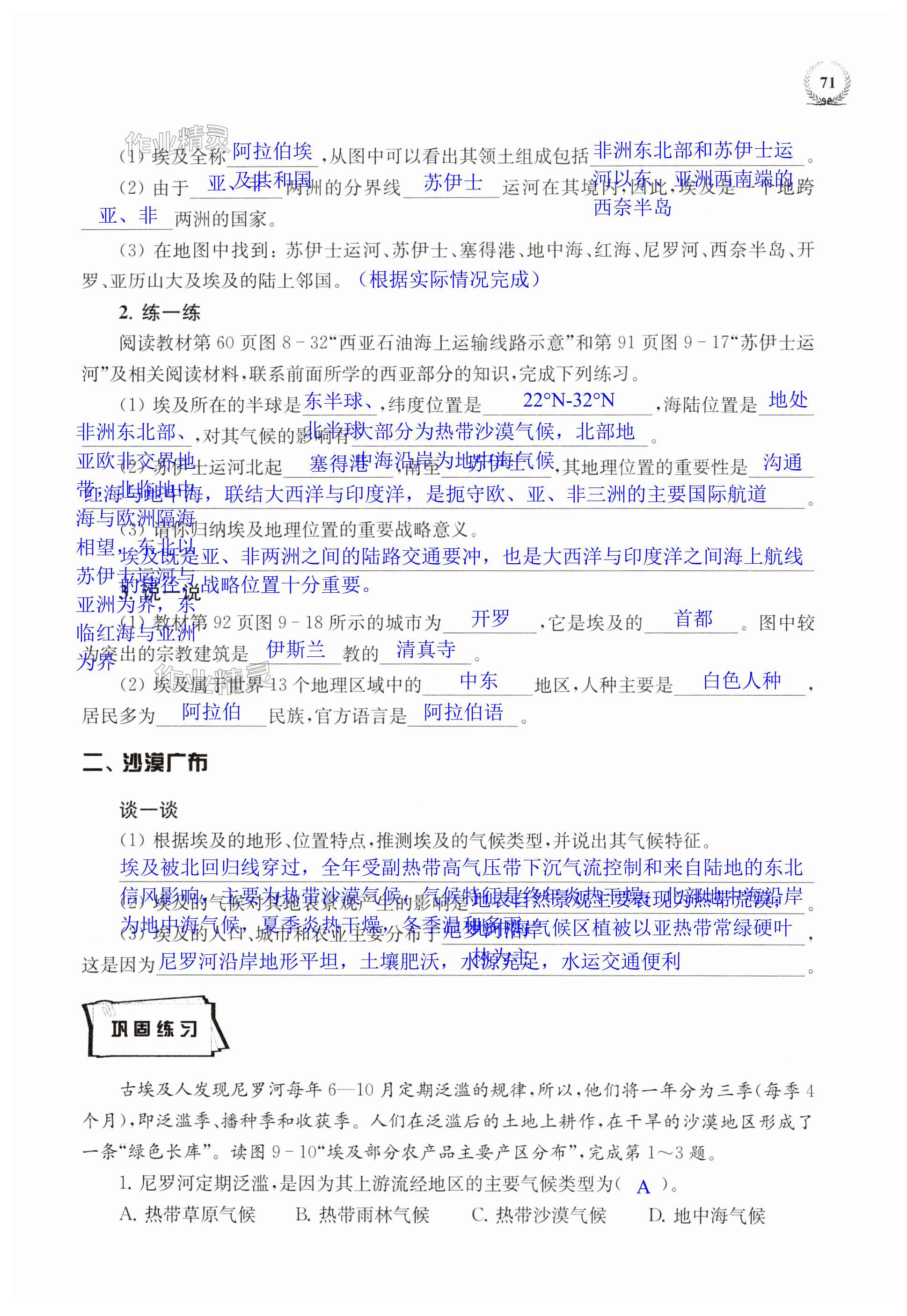注:目前有些书本章节名称可能整理的还不是很完善,但都是按照顺序排列的,请同学们按照顺序仔细查找。练习册 2025年探究与训练七年级地理下册湘教版 答案主要是用来给同学们做完题方便对答案用的,请勿直接抄袭。