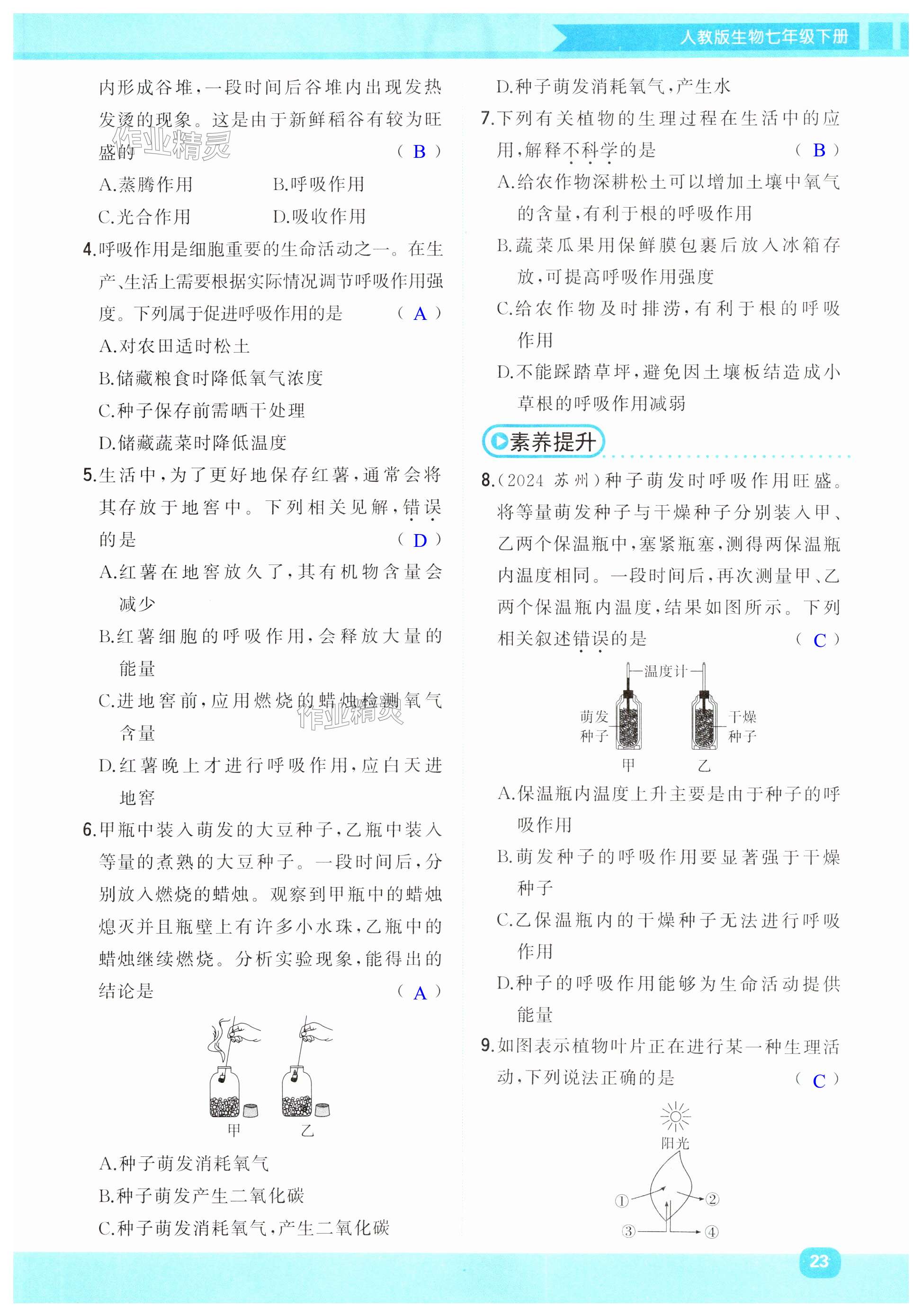 注:目前有些书本章节名称可能整理的还不是很完善,但都是按照顺序排列的,请同学们按照顺序仔细查找。练习册 2025年同步实践评价课程基础训练湖南少年儿童出版社七年级生物下册人教版 答案主要是用来给同学们做完题方便对答案用的,请勿直接抄袭。