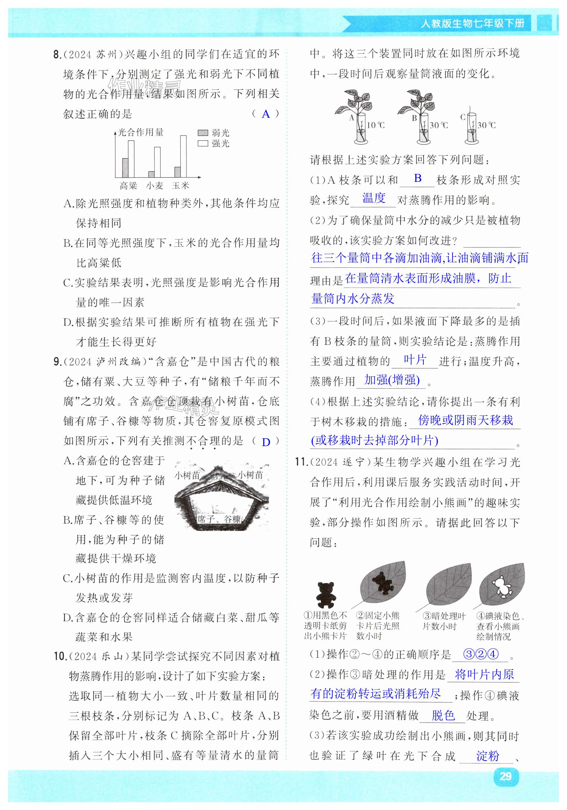 注:目前有些书本章节名称可能整理的还不是很完善,但都是按照顺序排列的,请同学们按照顺序仔细查找。练习册 2025年同步实践评价课程基础训练湖南少年儿童出版社七年级生物下册人教版 答案主要是用来给同学们做完题方便对答案用的,请勿直接抄袭。