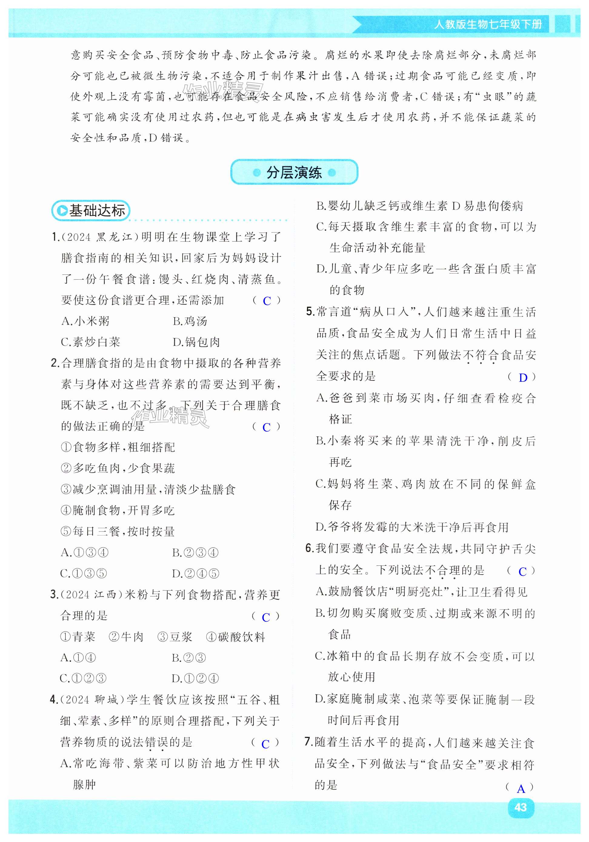 注:目前有些书本章节名称可能整理的还不是很完善,但都是按照顺序排列的,请同学们按照顺序仔细查找。练习册 2025年同步实践评价课程基础训练湖南少年儿童出版社七年级生物下册人教版 答案主要是用来给同学们做完题方便对答案用的,请勿直接抄袭。