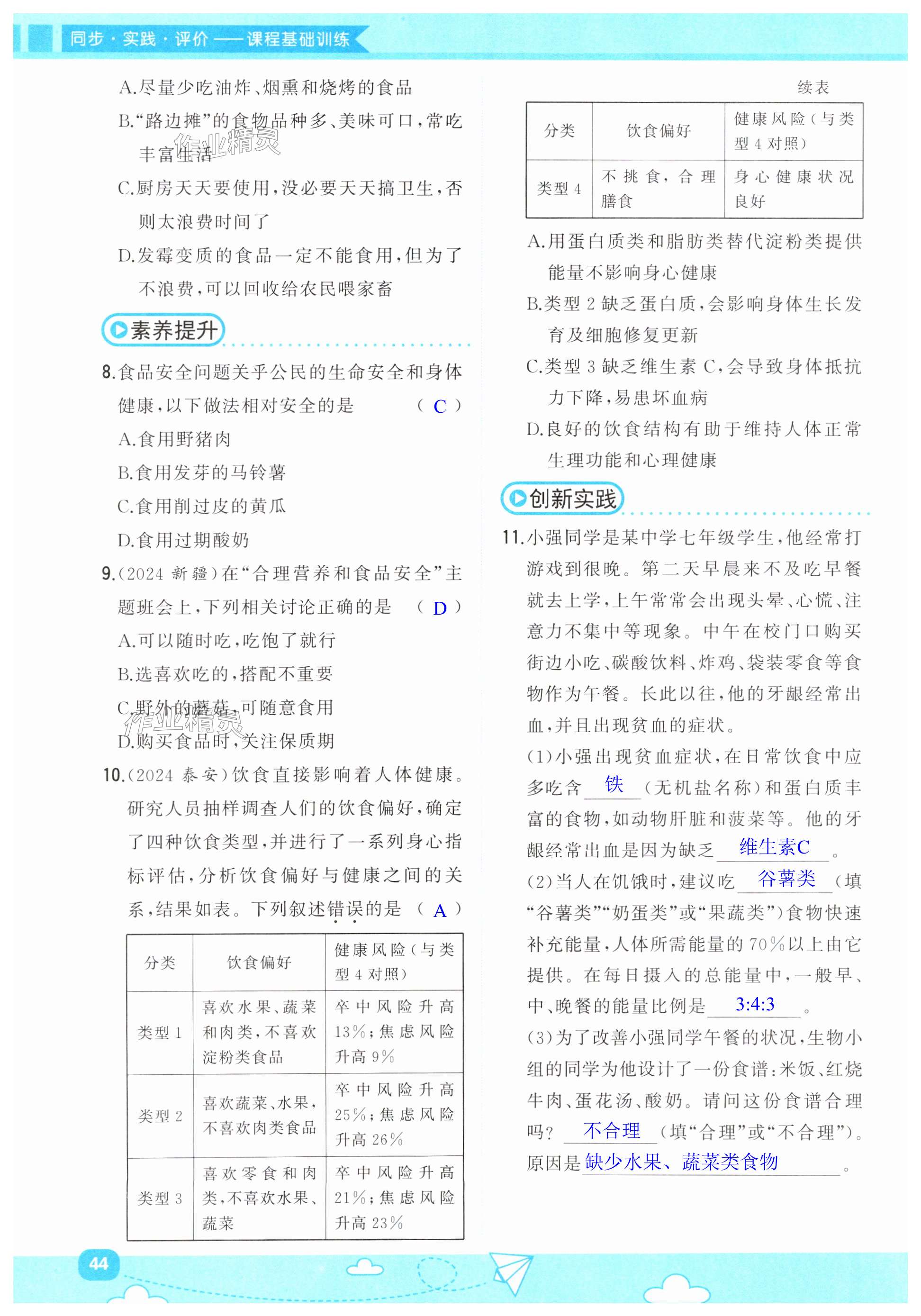 注:目前有些书本章节名称可能整理的还不是很完善,但都是按照顺序排列的,请同学们按照顺序仔细查找。练习册 2025年同步实践评价课程基础训练湖南少年儿童出版社七年级生物下册人教版 答案主要是用来给同学们做完题方便对答案用的,请勿直接抄袭。