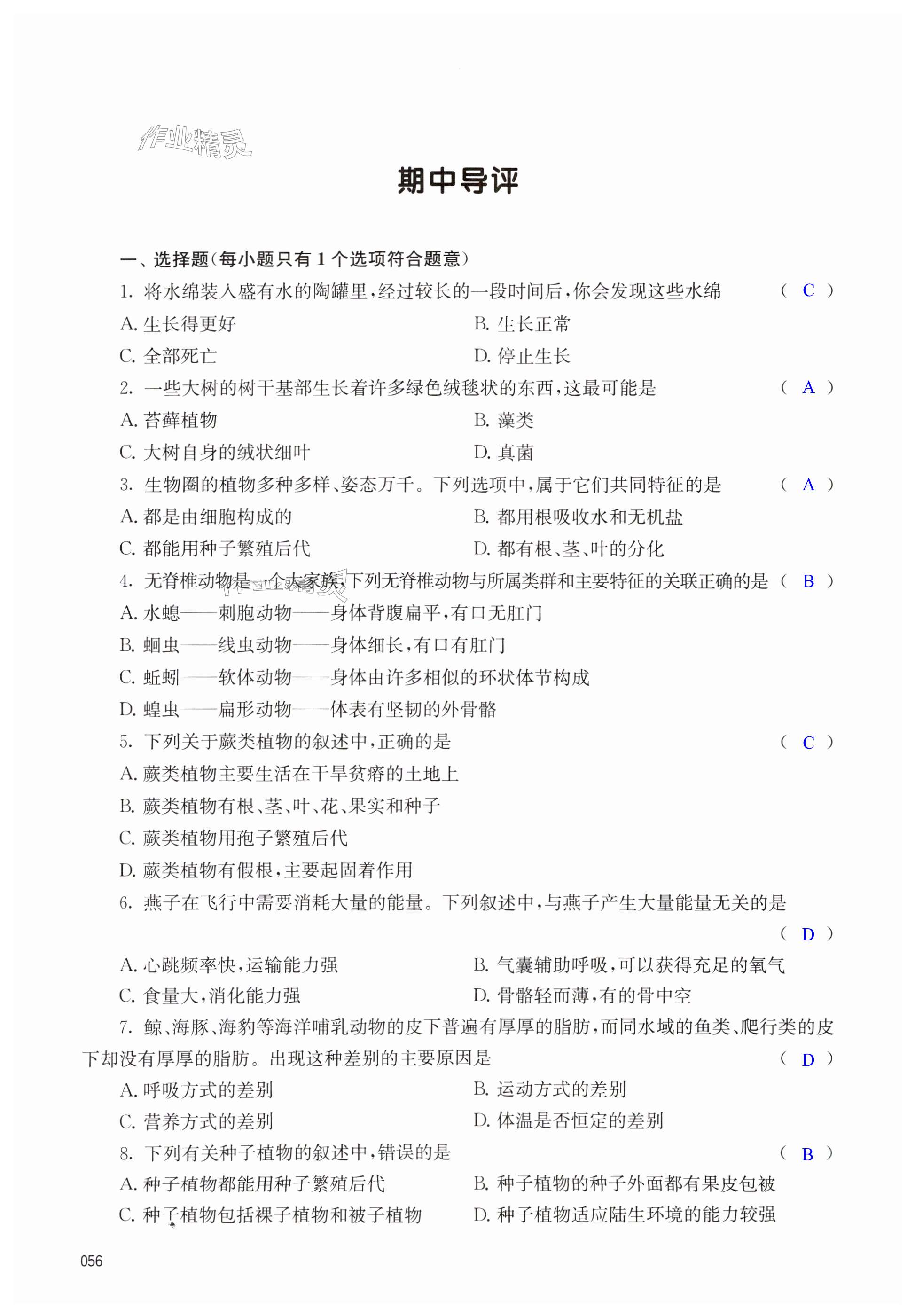 注:目前有些书本章节名称可能整理的还不是很完善,但都是按照顺序排列的,请同学们按照顺序仔细查找。练习册 2025年伴你学七年级生物下册苏科版 答案主要是用来给同学们做完题方便对答案用的,请勿直接抄袭。