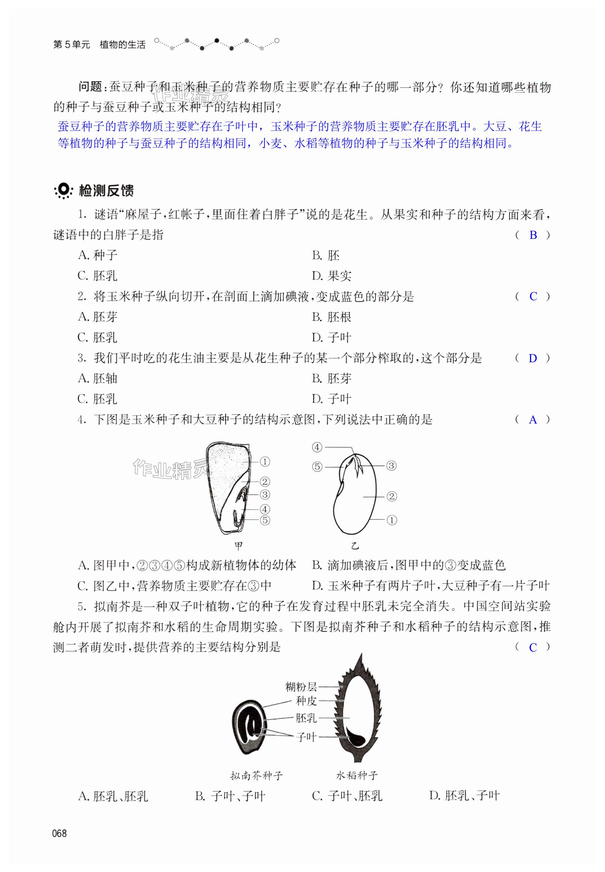 注:目前有些书本章节名称可能整理的还不是很完善,但都是按照顺序排列的,请同学们按照顺序仔细查找。练习册 2025年伴你学七年级生物下册苏科版 答案主要是用来给同学们做完题方便对答案用的,请勿直接抄袭。