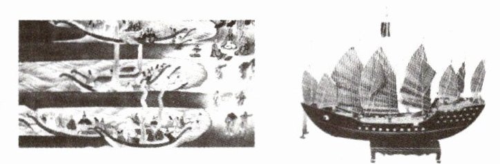 ①鉴真准备东渡 ②郑和下西洋的海船模型
