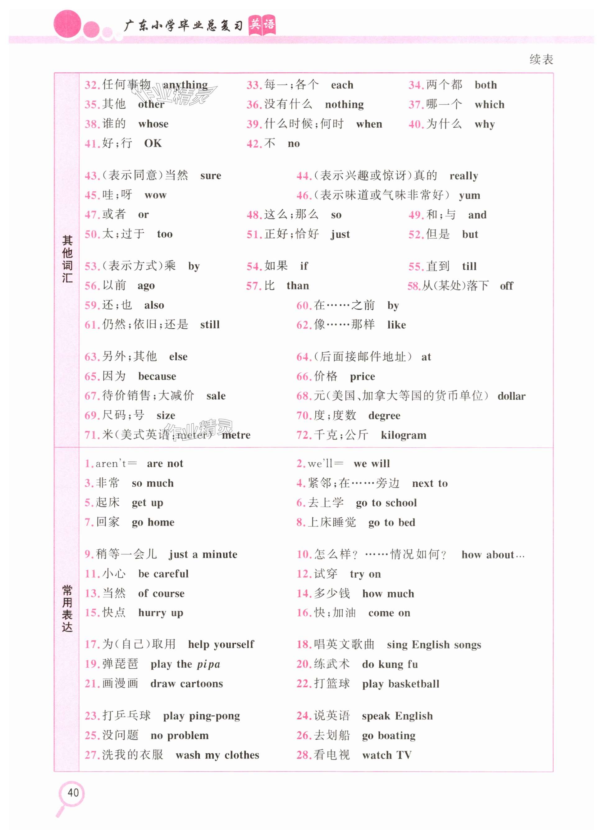 注:目前有些书本章节名称可能整理的还不是很完善,但都是按照顺序排列的,请同学们按照顺序仔细查找。练习册 2025年广东小学毕业总复习英语 答案主要是用来给同学们做完题方便对答案用的,请勿直接抄袭。