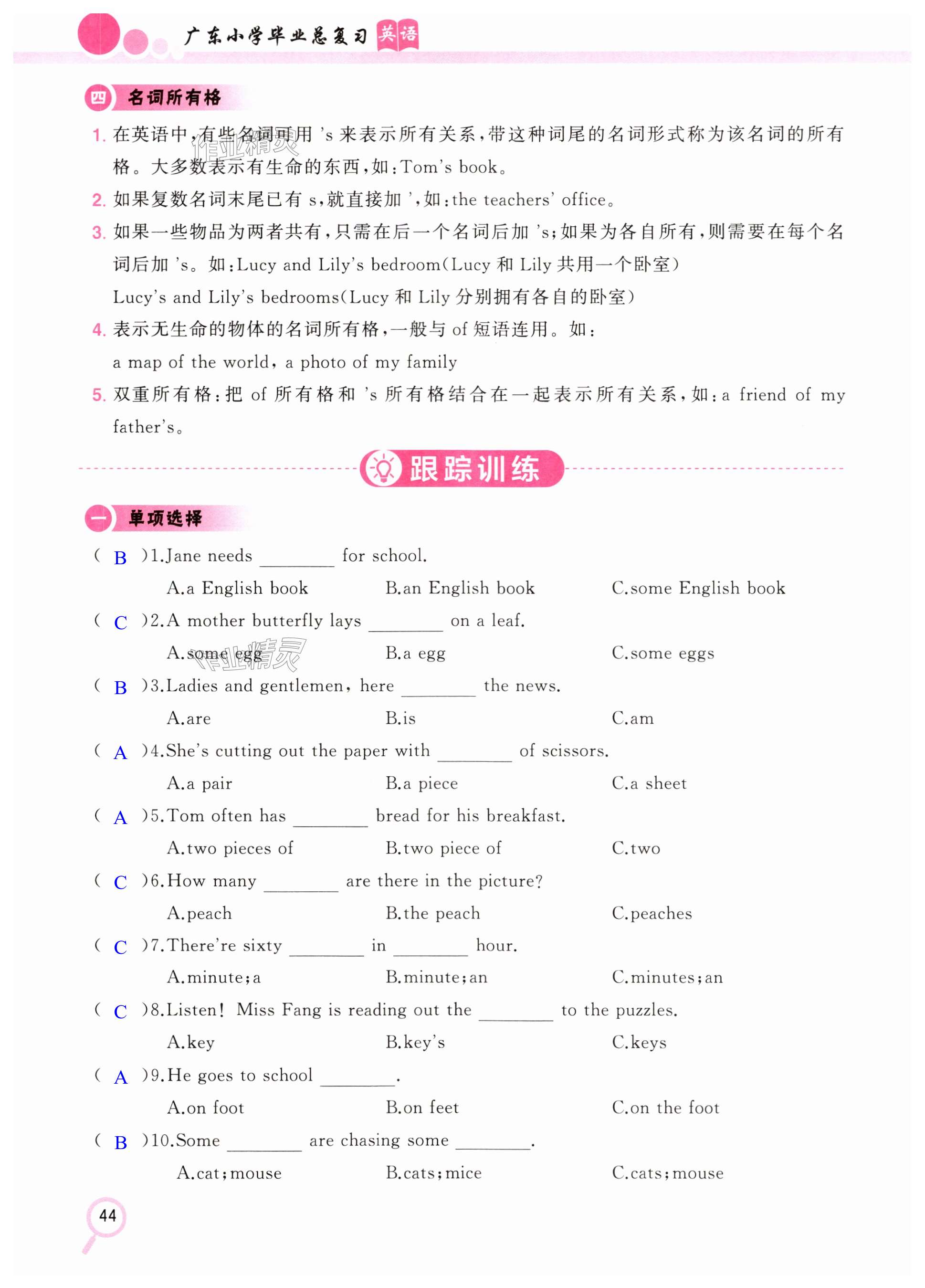 注:目前有些书本章节名称可能整理的还不是很完善,但都是按照顺序排列的,请同学们按照顺序仔细查找。练习册 2025年广东小学毕业总复习英语 答案主要是用来给同学们做完题方便对答案用的,请勿直接抄袭。
