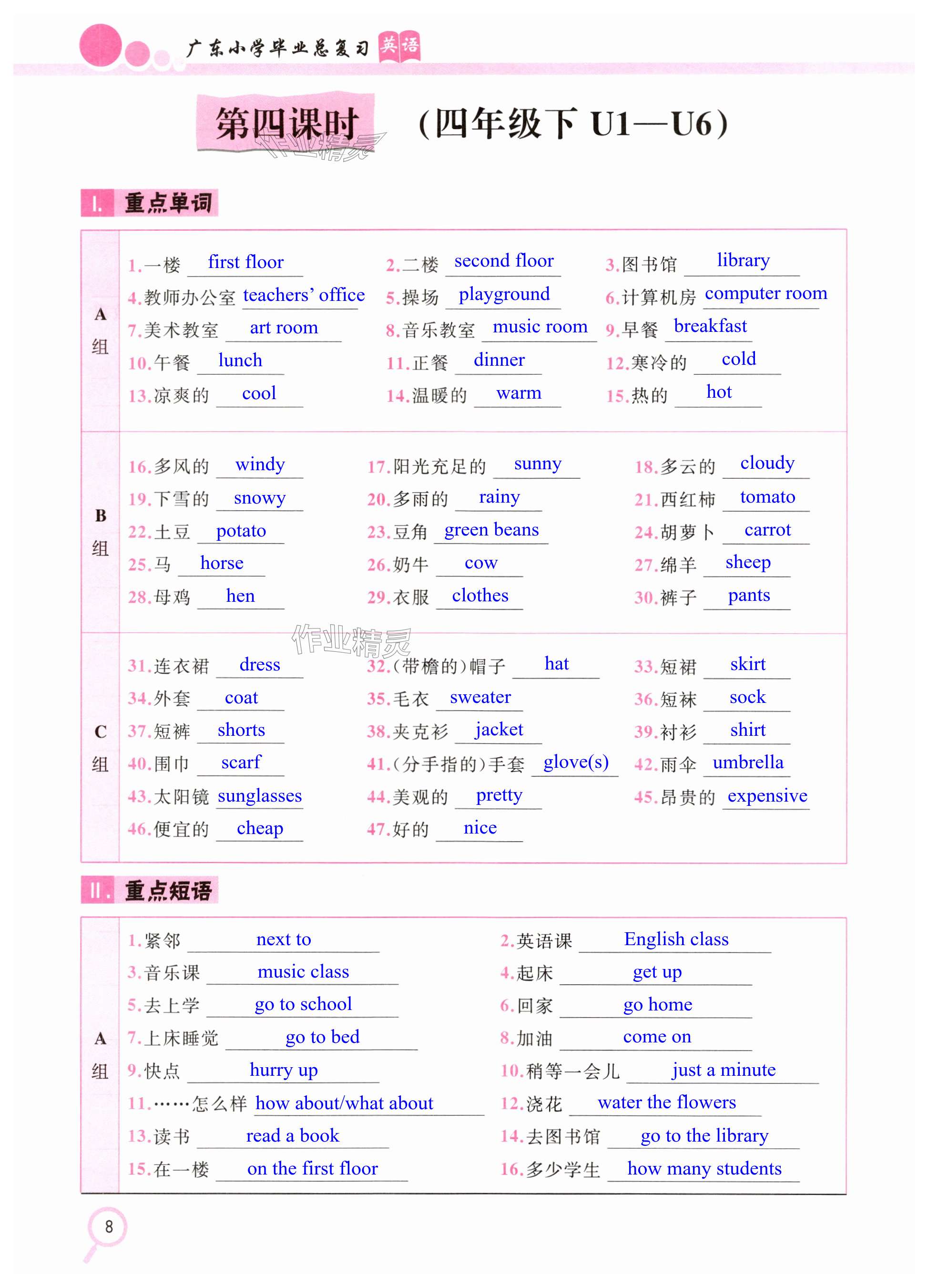 注:目前有些书本章节名称可能整理的还不是很完善,但都是按照顺序排列的,请同学们按照顺序仔细查找。练习册 2025年广东小学毕业总复习英语 答案主要是用来给同学们做完题方便对答案用的,请勿直接抄袭。