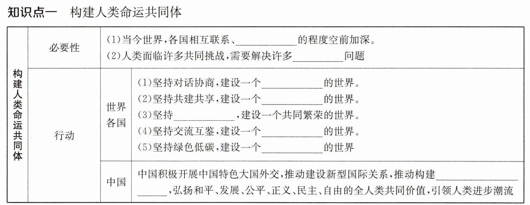 相互依存 全球性 持久和平 普遍安全 合作共赢 开放包容 清洁美丽 人类命运共同体