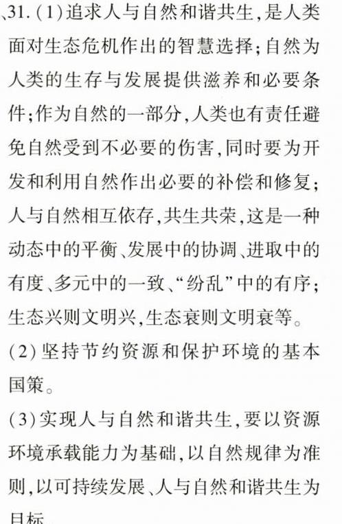 (2) 要实现人与自然和谐共生必须坚持什么基本国策?