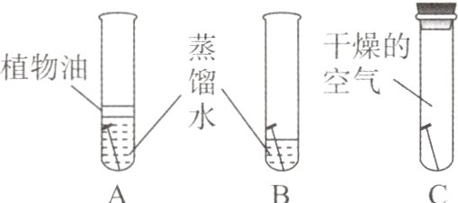 (1)一周后,观察到三支试管内铁钉变化情况:____________________,由此得出铁生锈的条件是____________________。