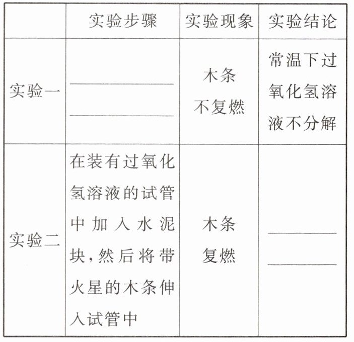 【实验验证】将带火星的木条伸入装有过氧化氢溶液的试管中 在水泥块的作用下过氧化氢常温下分解
