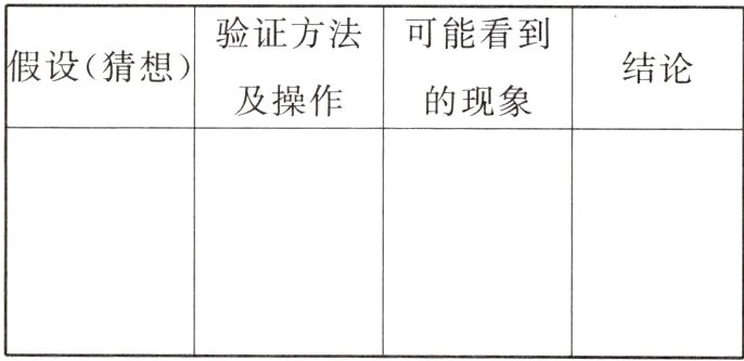 |假设(猜想)|验证方法及操作|可能看到的现象|结论|