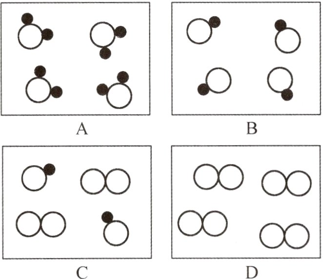 13. 下图是表示气体微粒的示意图,图中“〇”和“●”分别表示两种不同元素的原子,那么其中表示混合物的是( )