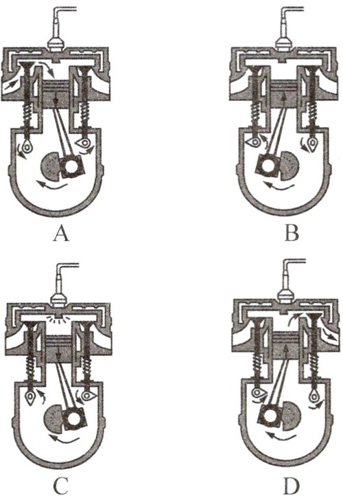 5.如图所示是汽油机工作时各种冲程的示意图,其中表示做功冲程的是( )