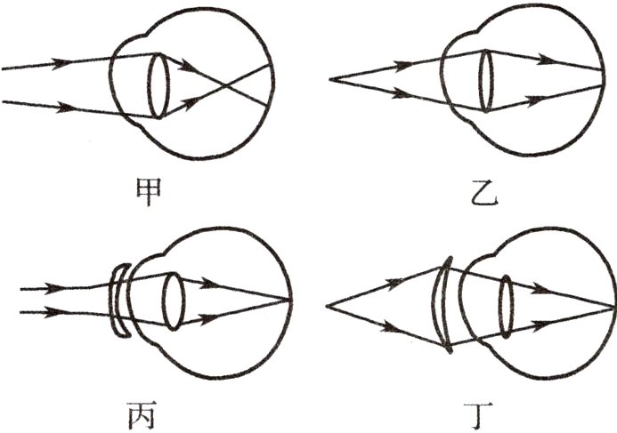 A.甲图:近视眼成像在视网膜前,用凸透镜矫正