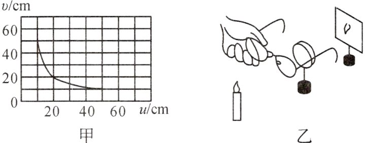 (2)通过实验他得到了凸透镜的像距v和物距u的关系(如图甲所示),由图可知凸透镜的焦距是________cm;当物距为30cm时的成像特点可应用于________(选填“照相机”“投影仪”或“放大镜”)。