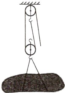 30. 小明家新买的房子准备装修,为了将水泥从地面送上楼,他在楼上安装了一个滑轮组,所用的滑轮每个2kg,每次将一袋50kg的水泥提升5m。(不计绳重和摩擦,g取10N/kg)求: