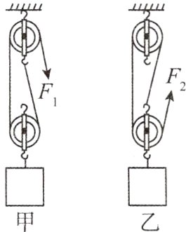 44.小明用如图所示的甲、乙两个滑轮组,分别在相同时间内将同一重物匀速提升相同高度,每个滑轮的重均相等,不计绳重及摩擦,针对这一现象,小明得出了4个结论:①F1做的功等于F2做的功;②甲滑轮组的机械效率等于乙滑轮组的机械效率;③使用乙滑轮组比甲滑轮组更加省力;④F1做功的功率等于F2做功的功率;其中正确的为( )