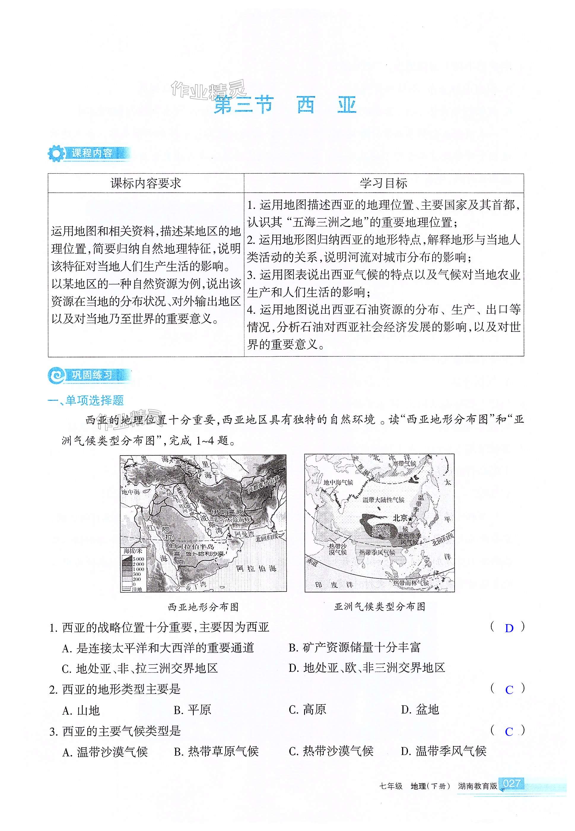 注:目前有些书本章节名称可能整理的还不是很完善,但都是按照顺序排列的,请同学们按照顺序仔细查找。练习册 2025年学习之友七年级地理下册湘教版 答案主要是用来给同学们做完题方便对答案用的,请勿直接抄袭。