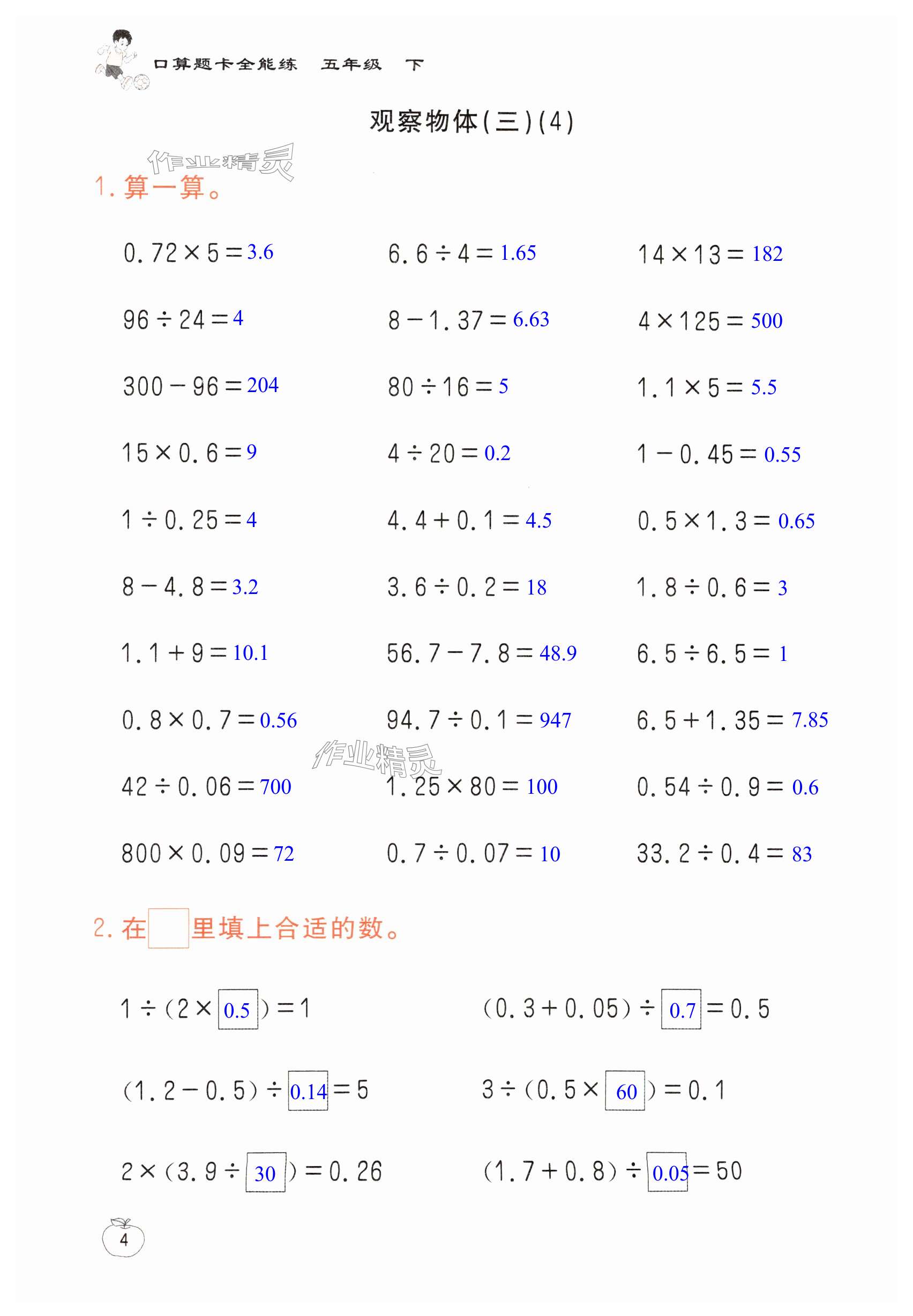 注:目前有些书本章节名称可能整理的还不是很完善,但都是按照顺序排列的,请同学们按照顺序仔细查找。练习册 2025年口算题卡全能练五年级数学下册人教版 答案主要是用来给同学们做完题方便对答案用的,请勿直接抄袭。