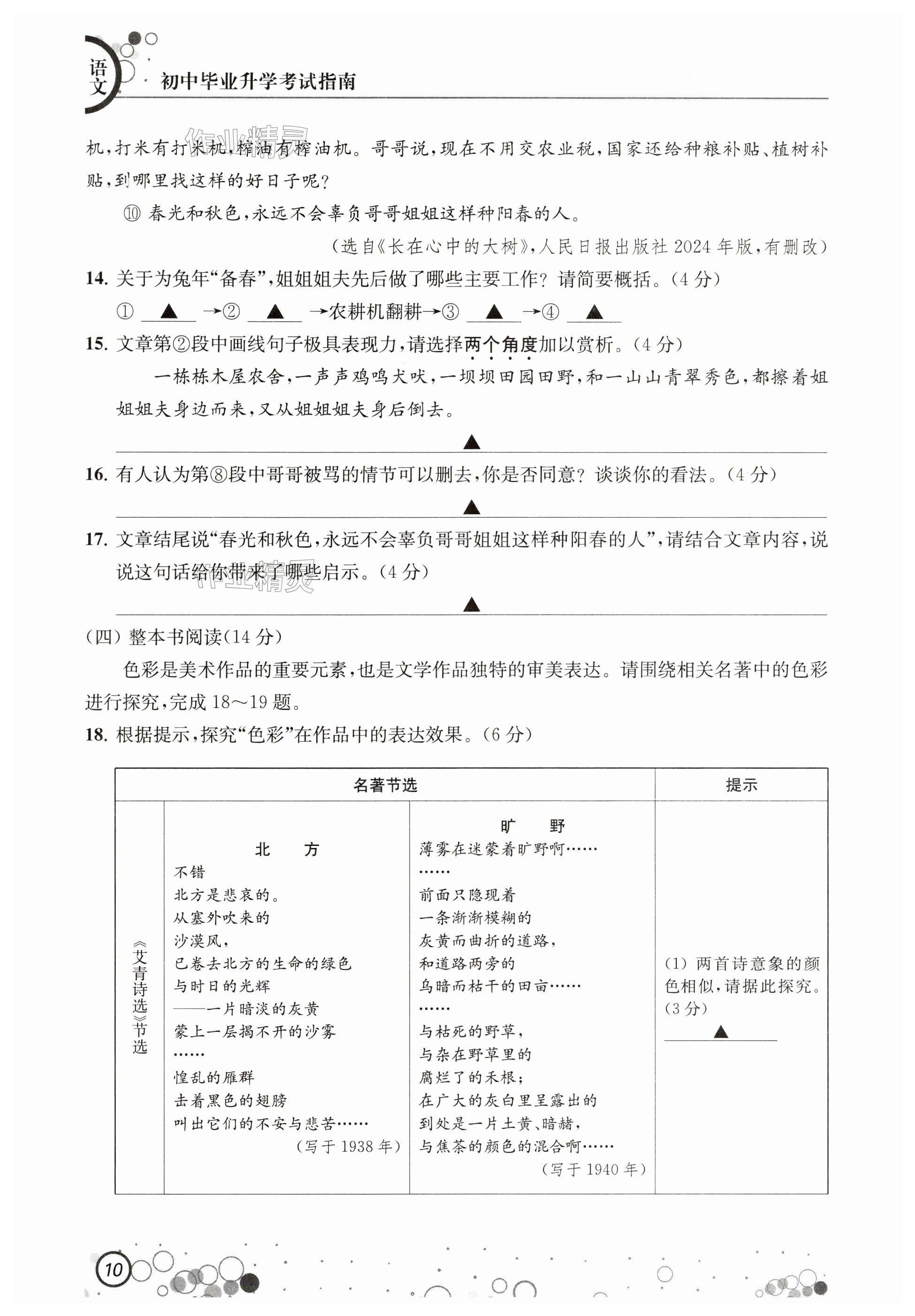 注:目前有些书本章节名称可能整理的还不是很完善,但都是按照顺序排列的,请同学们按照顺序仔细查找。练习册 2025年初中毕业升学考试指南语文 答案主要是用来给同学们做完题方便对答案用的,请勿直接抄袭。
