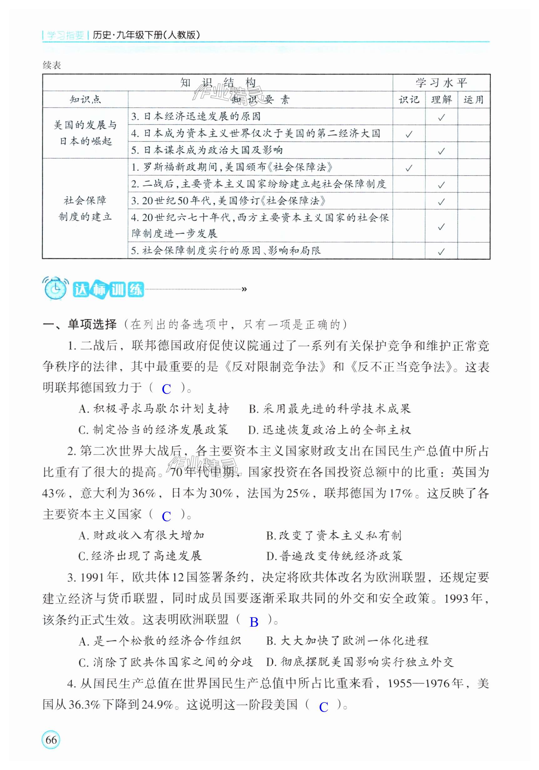 注:目前有些书本章节名称可能整理的还不是很完善,但都是按照顺序排列的,请同学们按照顺序仔细查找。练习册 2025年学习指要九年级历史下册人教版 答案主要是用来给同学们做完题方便对答案用的,请勿直接抄袭。