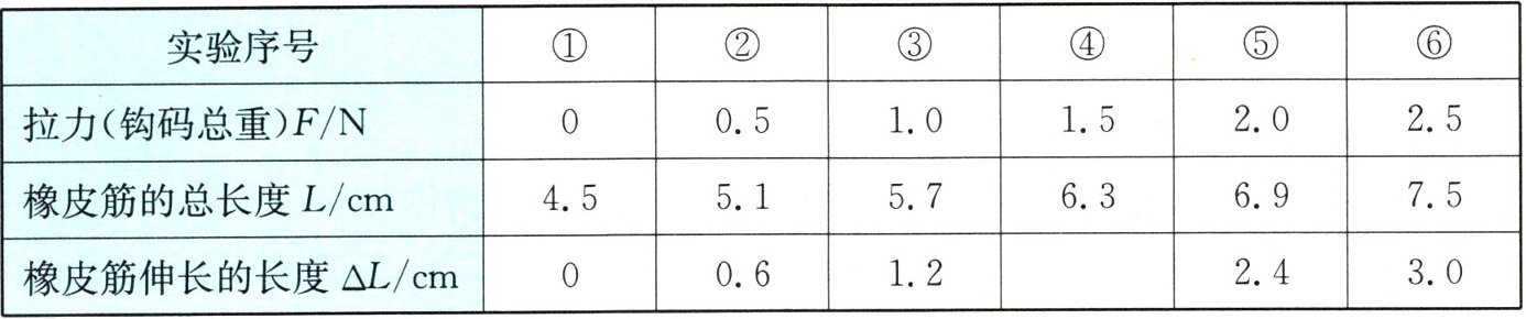|橡皮筋的总长度L/cm|4.5|5.1|5.7|6.3|6.9|7.5|