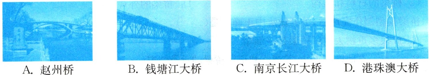 2. 如图所示是我国古今一些著名的桥梁,其中历史最悠久的是( )。