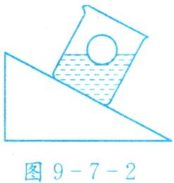 4. 如图9-7-2所示,把装有一定量水的烧杯放在斜面上,再把乒乓球放入水中,松手后,乒乓球漂浮在水面上。请画出乒乓球所受浮力的示意图。