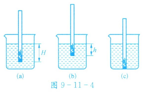 (2)他将吸管放入水中,如图9-11-4(a)所示,测得吸管浸入水中的深度为H;再将吸管放到另一液体中,如图9-11-4(b)所示,吸管浸入液体中的深度为h。用ρ液、ρ水分别表示液体和水的密度,则ρ液___(= />/<)ρ水,h与ρ水、ρ液以及H的关系式是h= ___。
