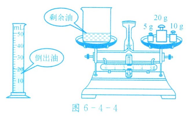 (3)小明又设计出另一种测量油密度的方法,步骤如下:A. 测出空烧杯的质量$m_{0}$;B. 从量筒中向烧杯内倒入适量的油,测出烧杯与油的质量$m_{1}$;C. 测出量筒内剩余油的体积$V_{0}$;D. 往量筒内倒入适量的油,测出油的体积V。