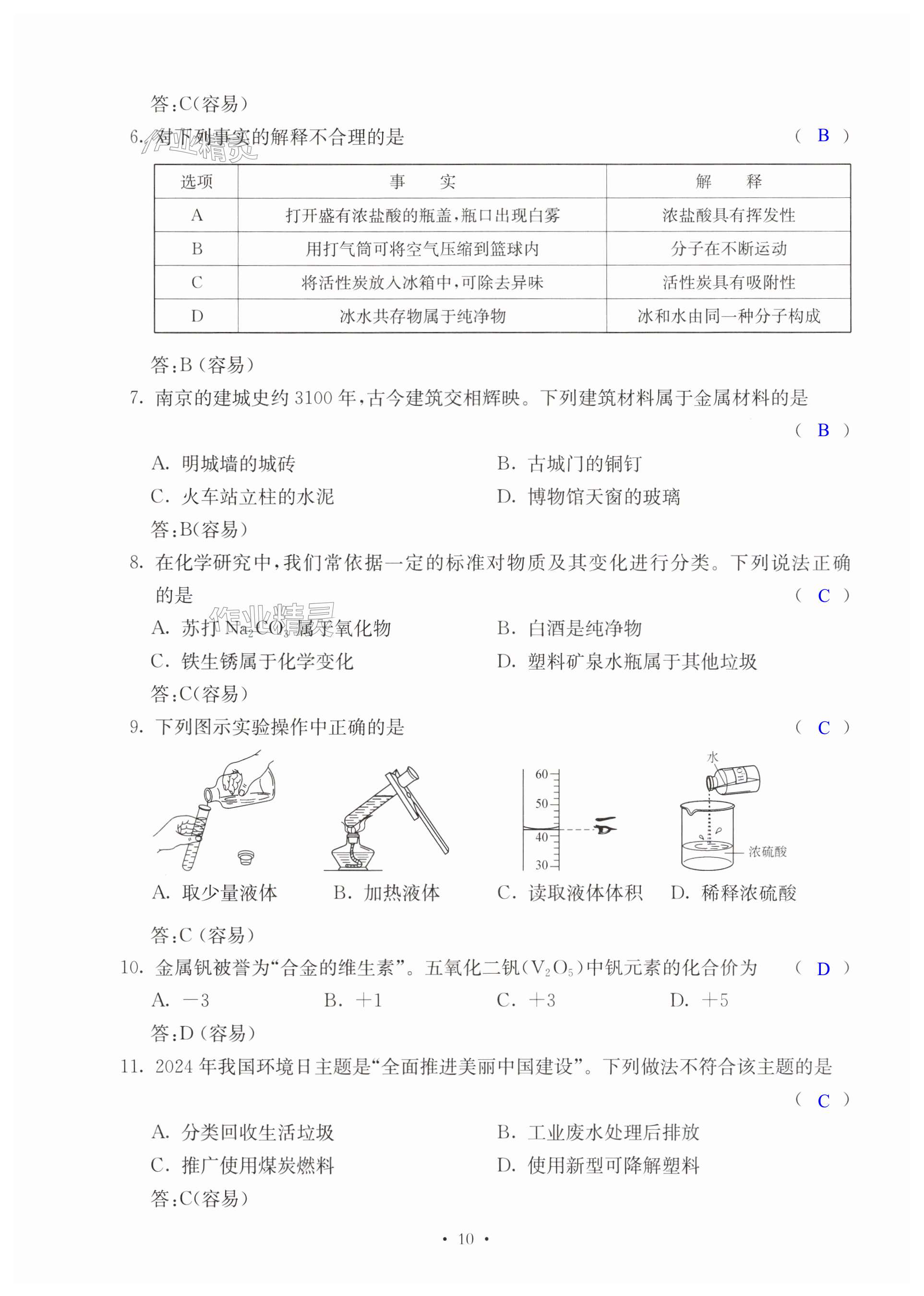 注:目前有些书本章节名称可能整理的还不是很完善,但都是按照顺序排列的,请同学们按照顺序仔细查找。练习册 2025年南京市中考指导书化学 答案主要是用来给同学们做完题方便对答案用的,请勿直接抄袭。