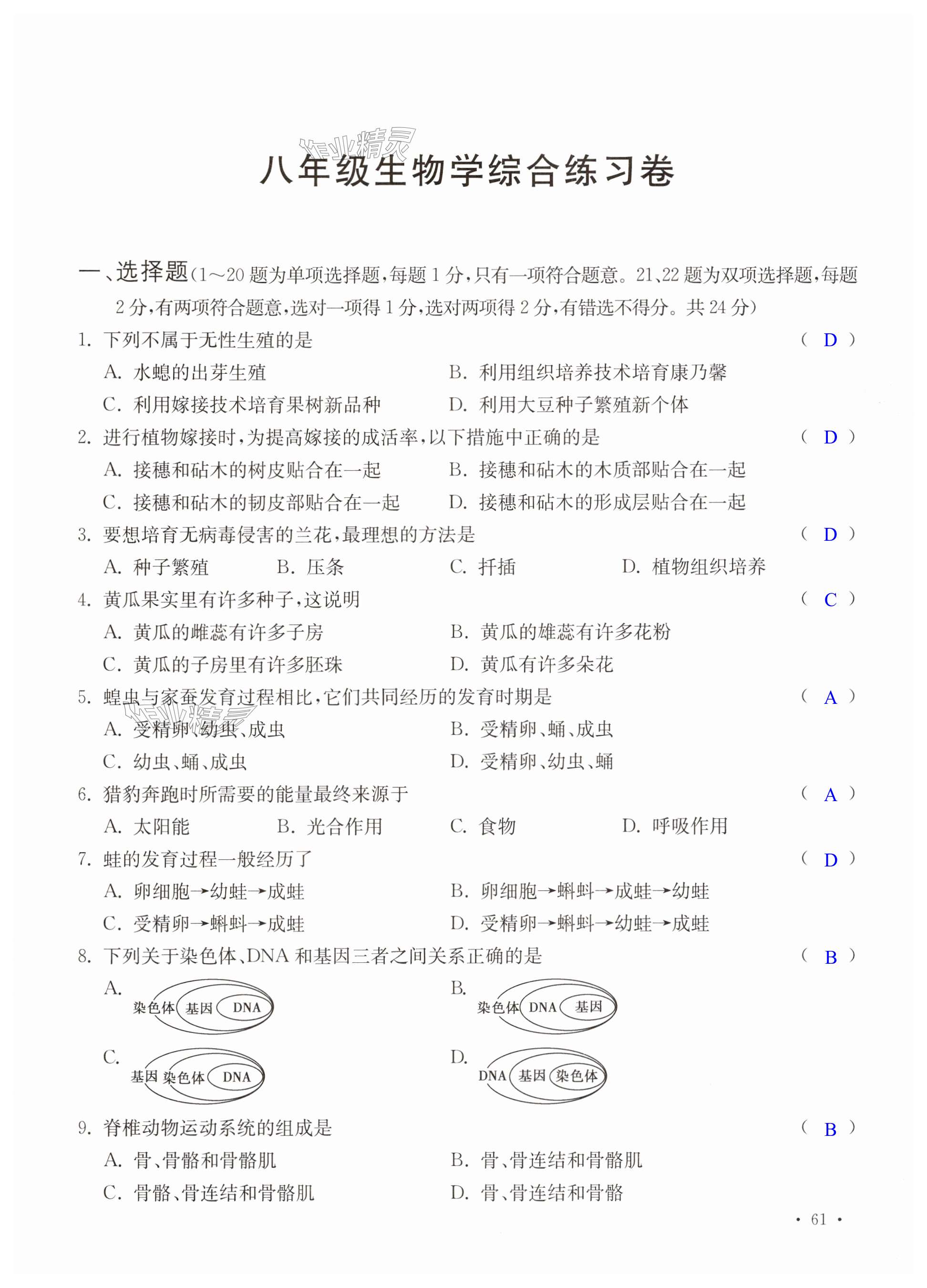 注:目前有些书本章节名称可能整理的还不是很完善,但都是按照顺序排列的,请同学们按照顺序仔细查找。练习册 2025年南京市中考指导书生物学地理 答案主要是用来给同学们做完题方便对答案用的,请勿直接抄袭。