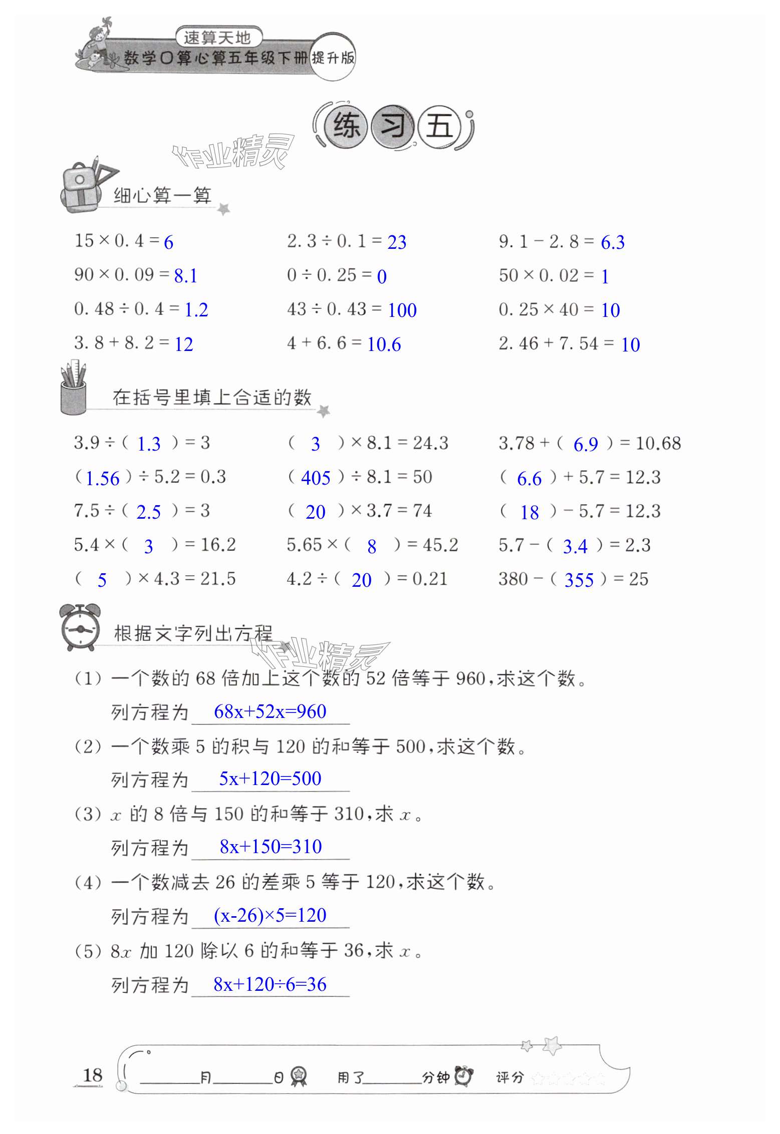 注:目前有些书本章节名称可能整理的还不是很完善,但都是按照顺序排列的,请同学们按照顺序仔细查找。练习册 2025年速算天地数学口算心算五年级下册苏教版提升版 答案主要是用来给同学们做完题方便对答案用的,请勿直接抄袭。