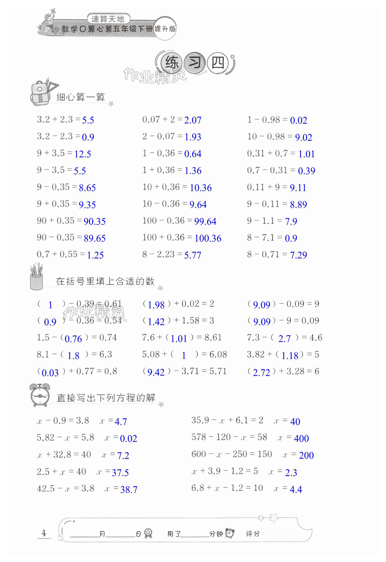2025年速算天地数学口算心算五年级下册苏教版提升版