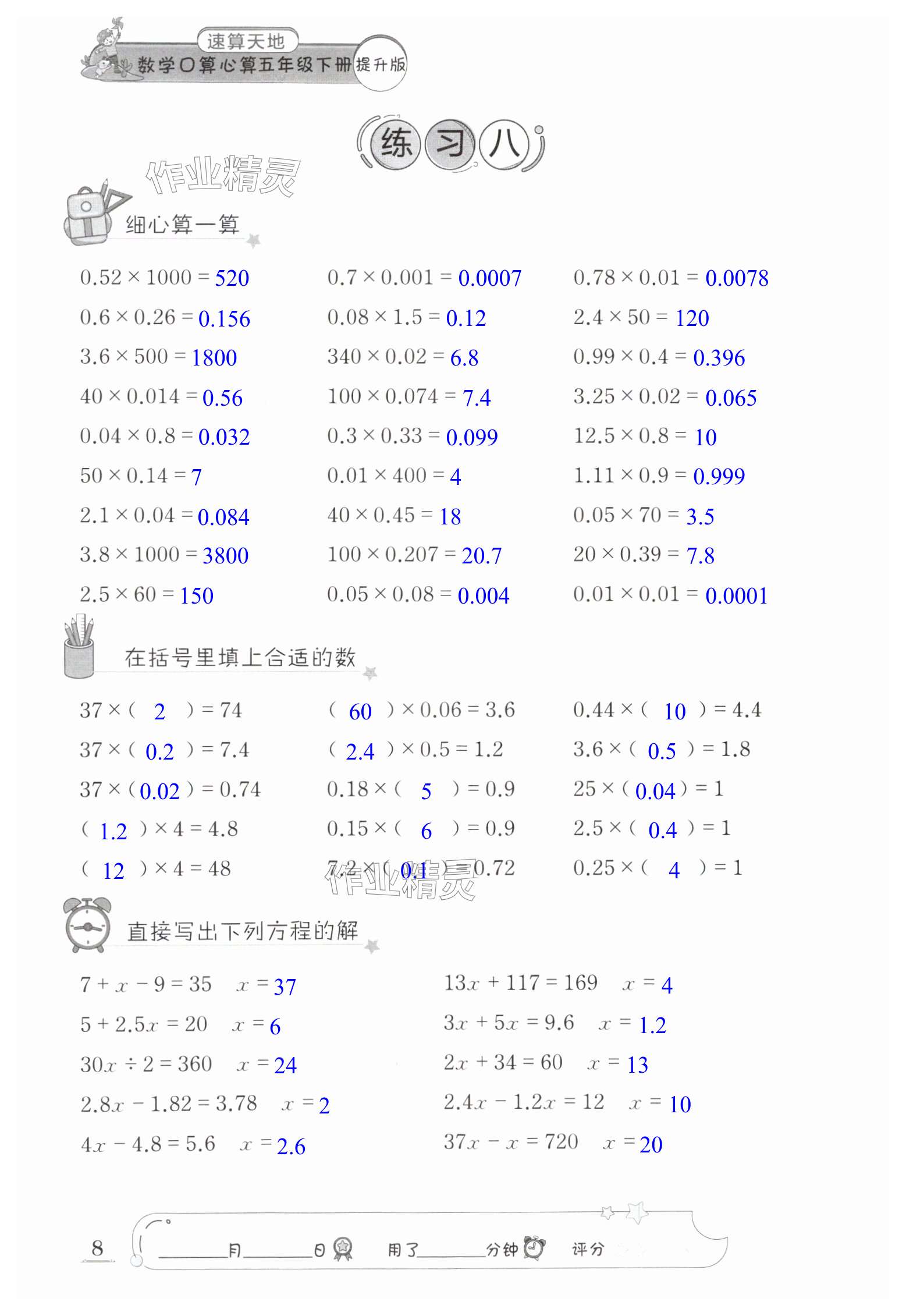 注:目前有些书本章节名称可能整理的还不是很完善,但都是按照顺序排列的,请同学们按照顺序仔细查找。练习册 2025年速算天地数学口算心算五年级下册苏教版提升版 答案主要是用来给同学们做完题方便对答案用的,请勿直接抄袭。
