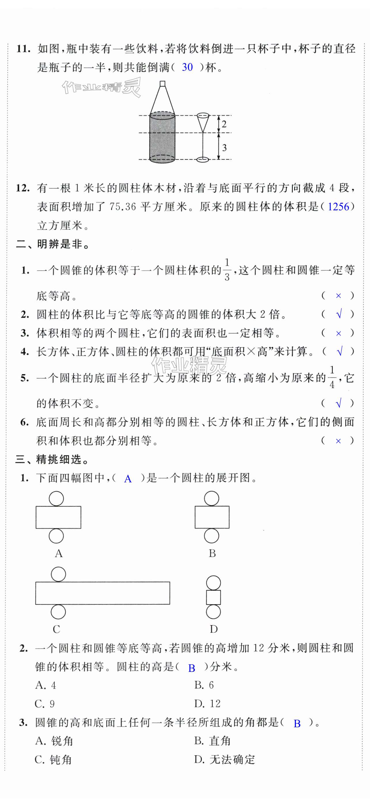 注:目前有些书本章节名称可能整理的还不是很完善,但都是按照顺序排列的,请同学们按照顺序仔细查找。练习册 2025年小学校内巩固六年级数学下册苏教版 答案主要是用来给同学们做完题方便对答案用的,请勿直接抄袭。