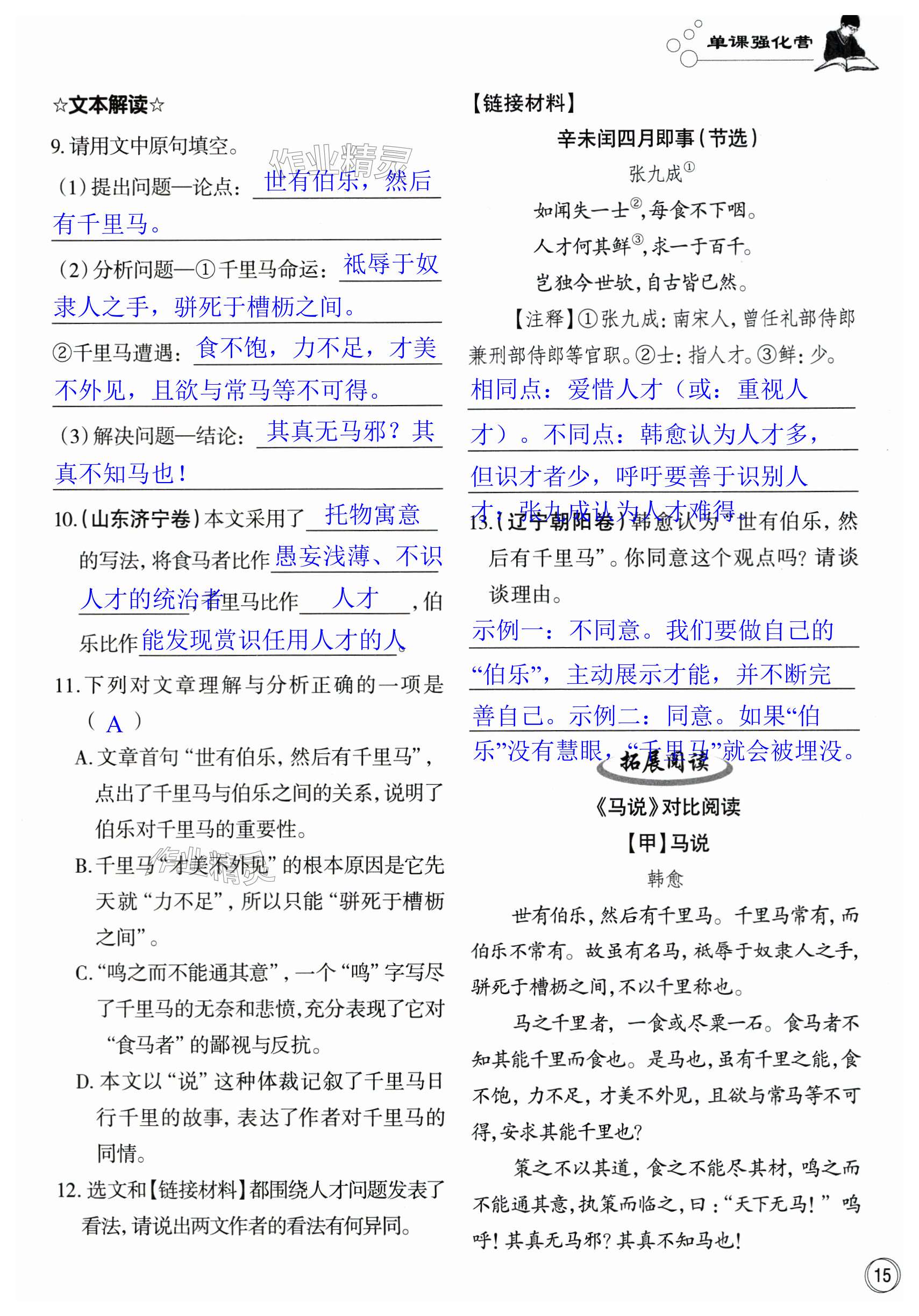 注:目前有些书本章节名称可能整理的还不是很完善,但都是按照顺序排列的,请同学们按照顺序仔细查找。练习册 2025年智慧语文读练测八年级下册人教版 答案主要是用来给同学们做完题方便对答案用的,请勿直接抄袭。