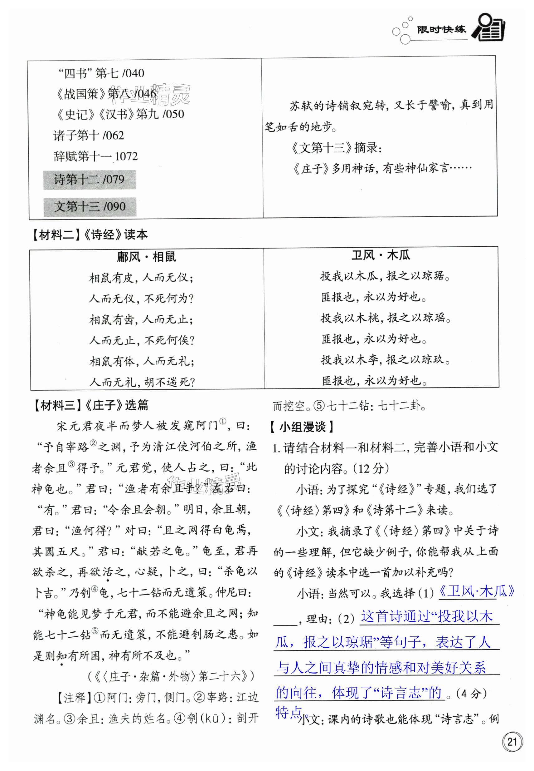 注:目前有些书本章节名称可能整理的还不是很完善,但都是按照顺序排列的,请同学们按照顺序仔细查找。练习册 2025年智慧语文读练测八年级下册人教版 答案主要是用来给同学们做完题方便对答案用的,请勿直接抄袭。