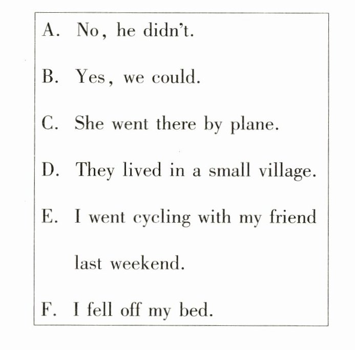 ( ) 5. Where did your grandparents live twenty years ago? E. I went cycling with my friend last weekend.