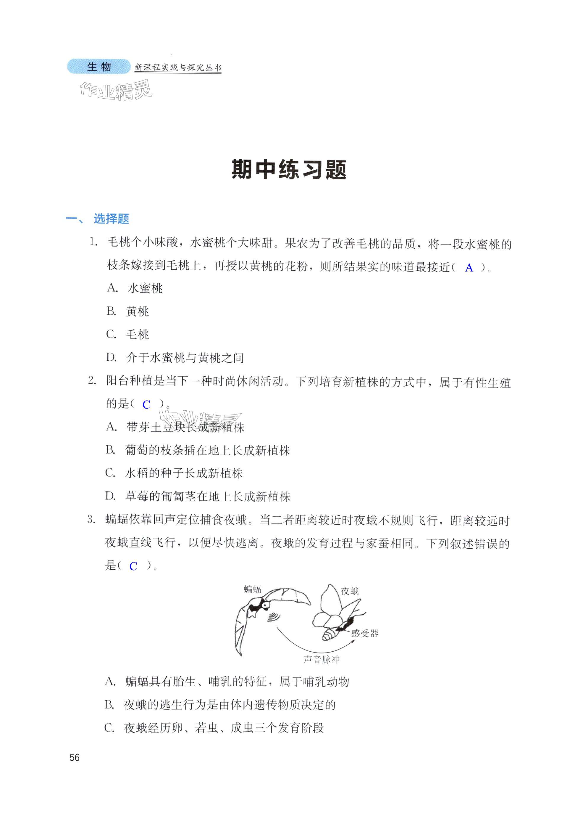 注:目前有些书本章节名称可能整理的还不是很完善,但都是按照顺序排列的,请同学们按照顺序仔细查找。练习册 2025年新课程实践与探究丛书八年级生物下册人教版 答案主要是用来给同学们做完题方便对答案用的,请勿直接抄袭。