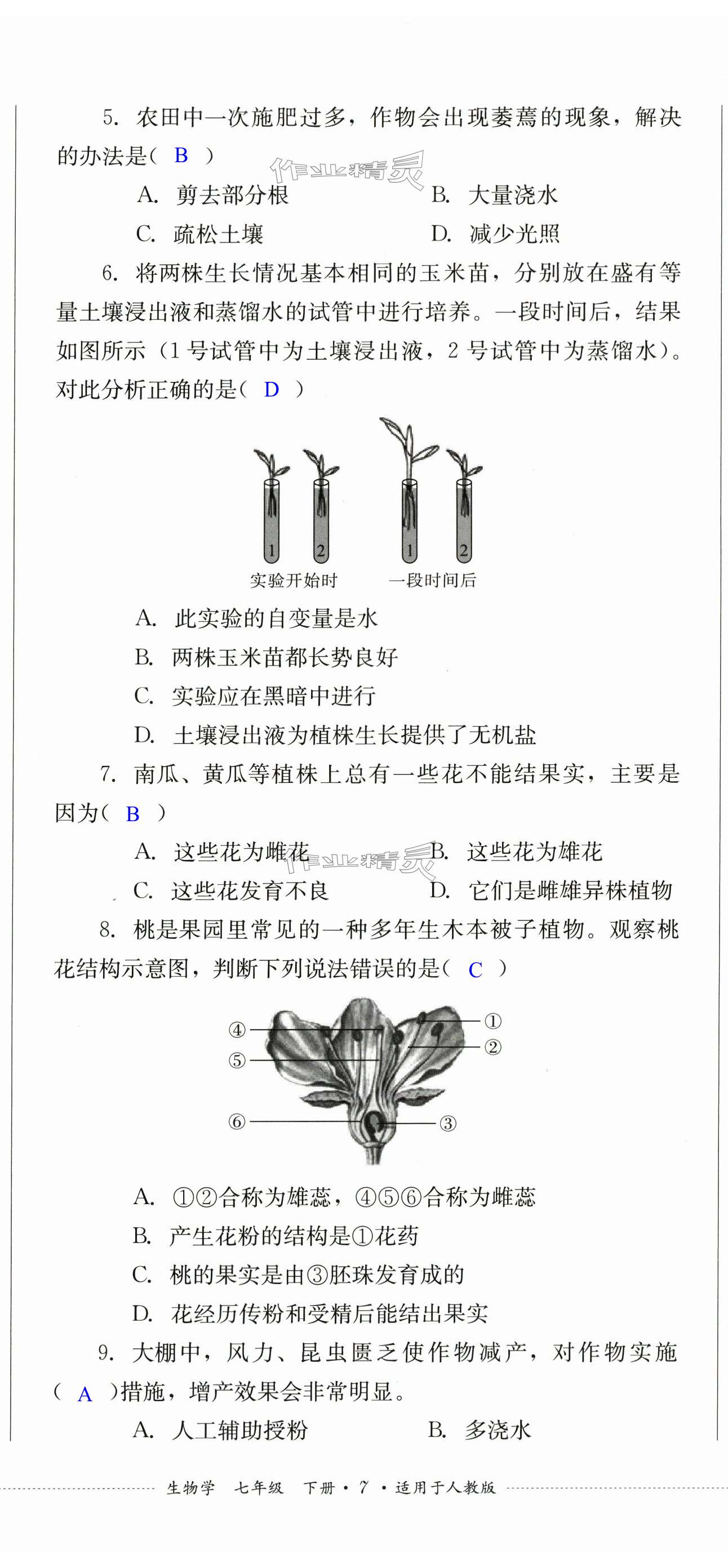 注:目前有些书本章节名称可能整理的还不是很完善,但都是按照顺序排列的,请同学们按照顺序仔细查找。练习册 2025年学情点评四川教育出版社七年级生物下册人教版 答案主要是用来给同学们做完题方便对答案用的,请勿直接抄袭。