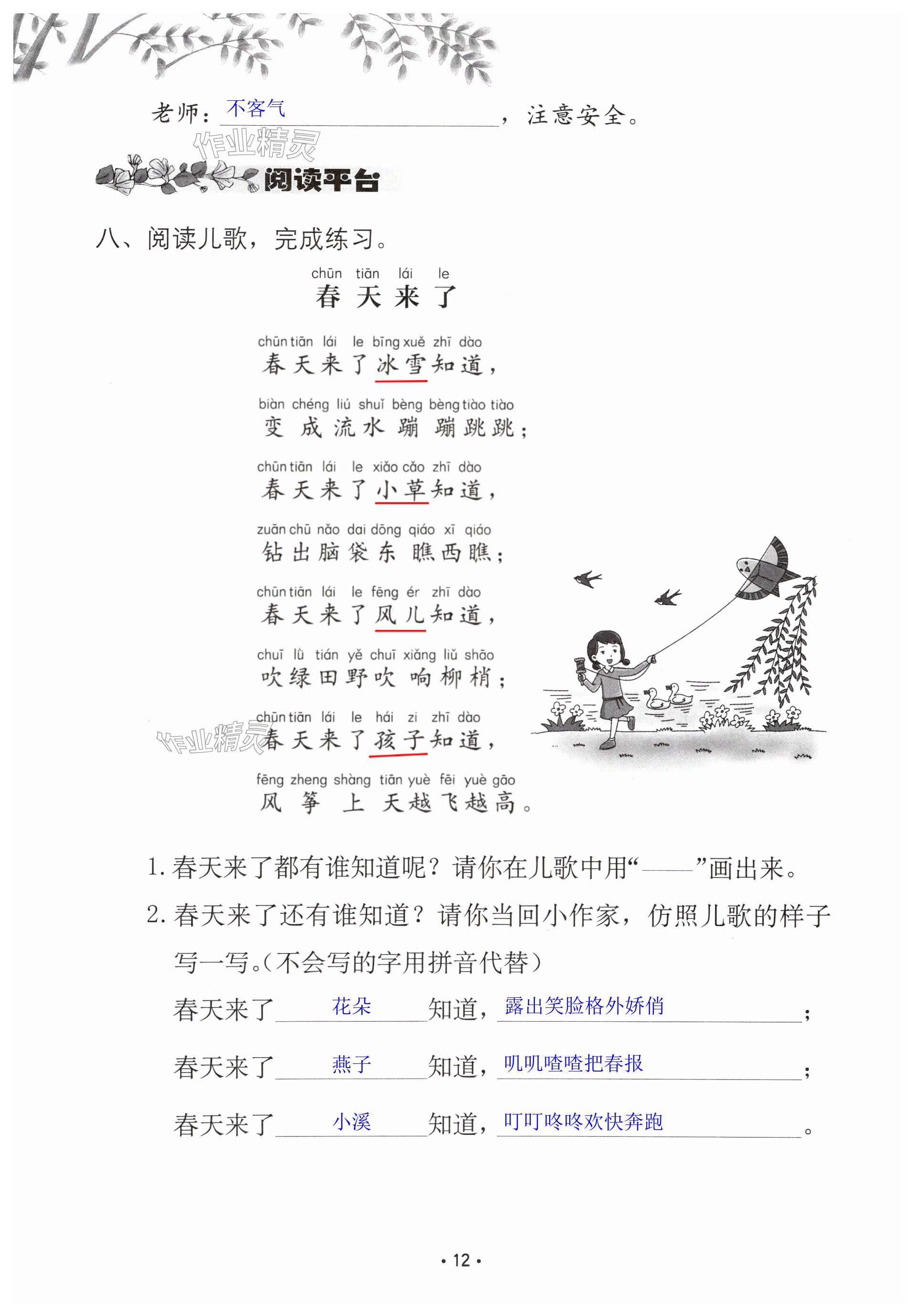注:目前有些书本章节名称可能整理的还不是很完善,但都是按照顺序排列的,请同学们按照顺序仔细查找。练习册 2025年学习与巩固一年级语文下册人教版A版 答案主要是用来给同学们做完题方便对答案用的,请勿直接抄袭。