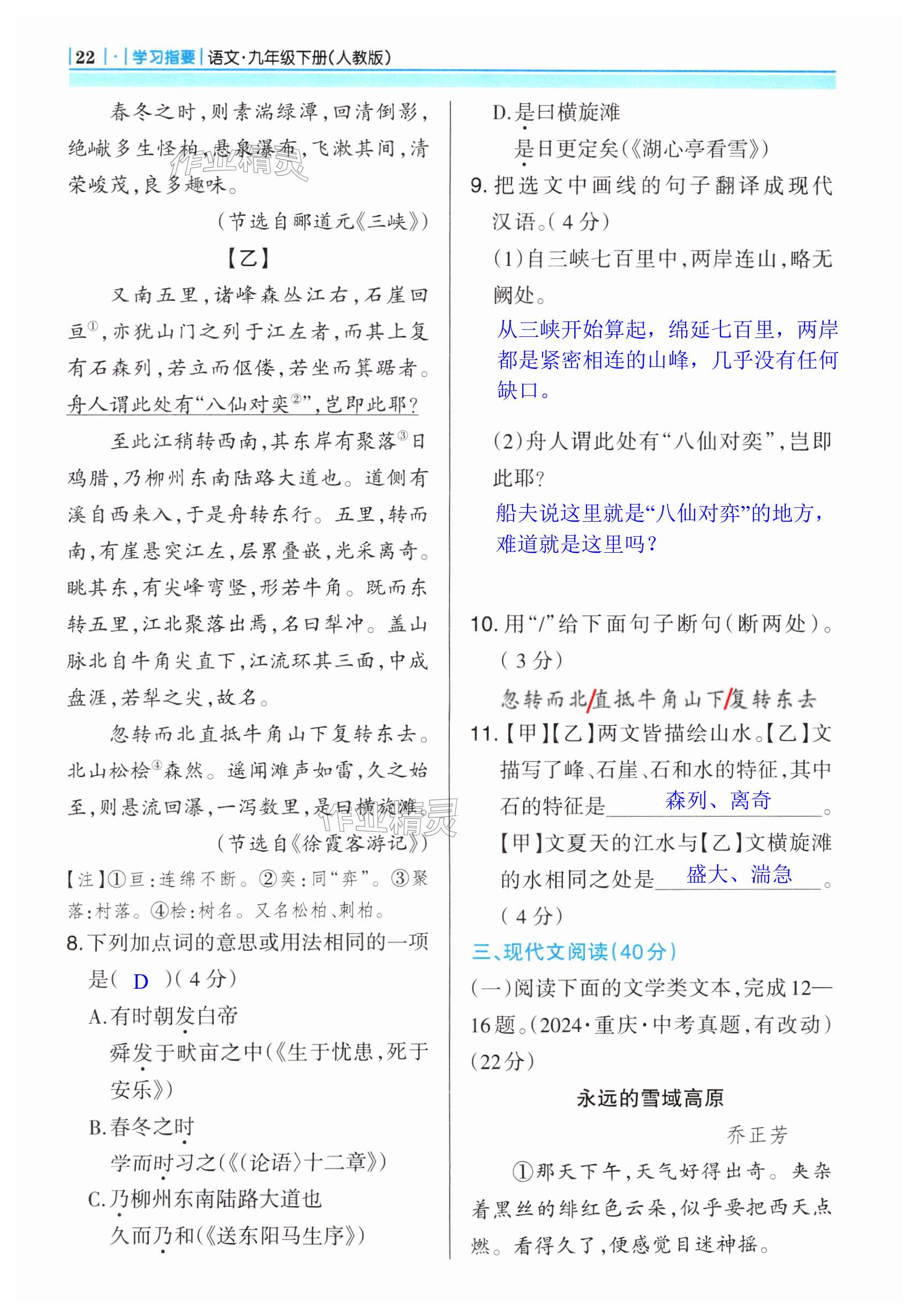 注:目前有些书本章节名称可能整理的还不是很完善,但都是按照顺序排列的,请同学们按照顺序仔细查找。练习册 2025年学习指要九年级语文下册人教版 答案主要是用来给同学们做完题方便对答案用的,请勿直接抄袭。