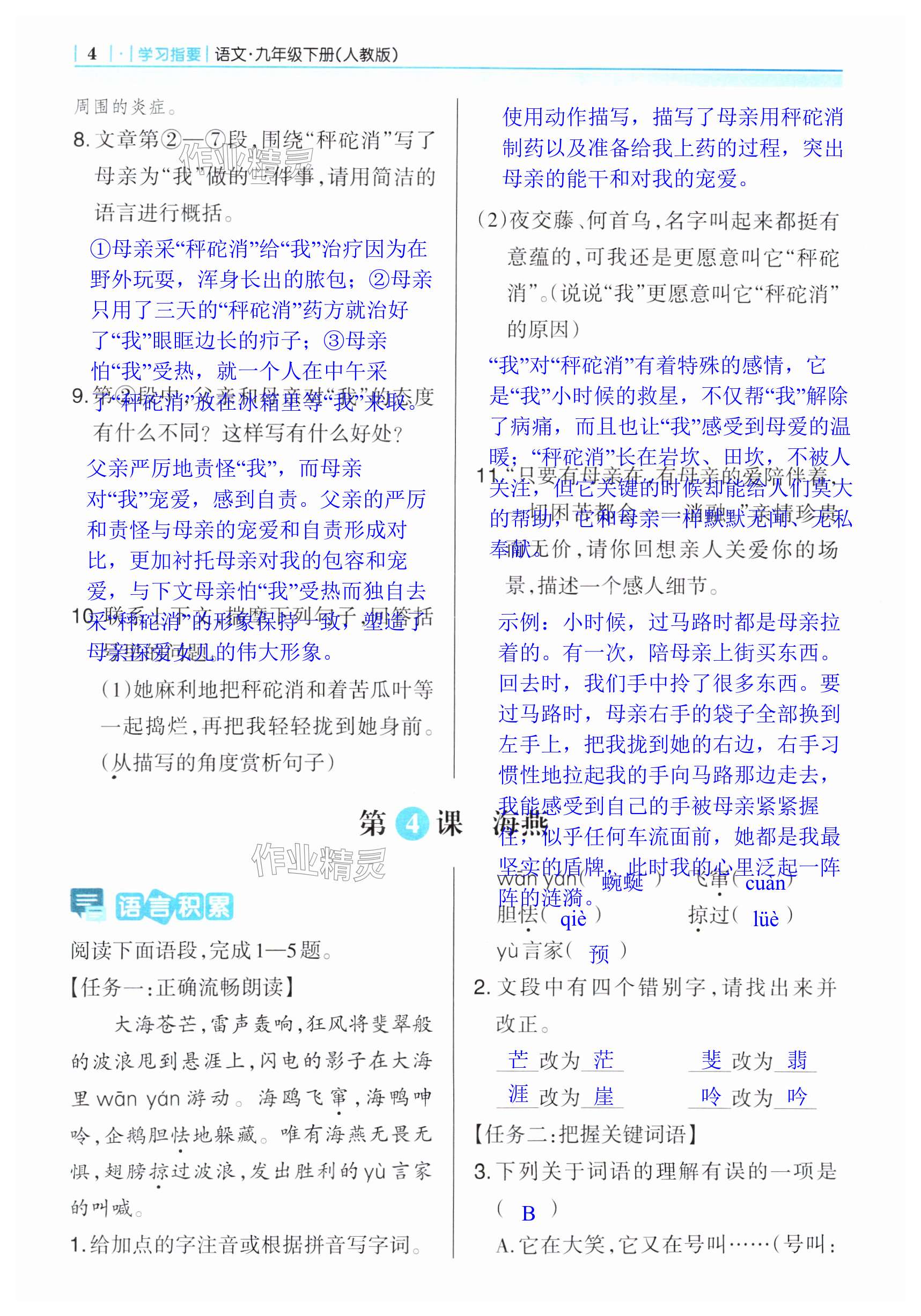 注:目前有些书本章节名称可能整理的还不是很完善,但都是按照顺序排列的,请同学们按照顺序仔细查找。练习册 2025年学习指要九年级语文下册人教版 答案主要是用来给同学们做完题方便对答案用的,请勿直接抄袭。