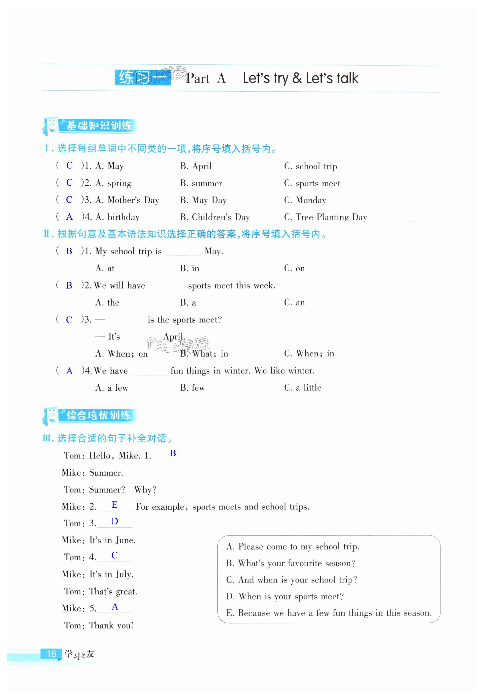 注:目前有些书本章节名称可能整理的还不是很完善,但都是按照顺序排列的,请同学们按照顺序仔细查找。练习册 2025年学习之友五年级英语下册人教版 答案主要是用来给同学们做完题方便对答案用的,请勿直接抄袭。