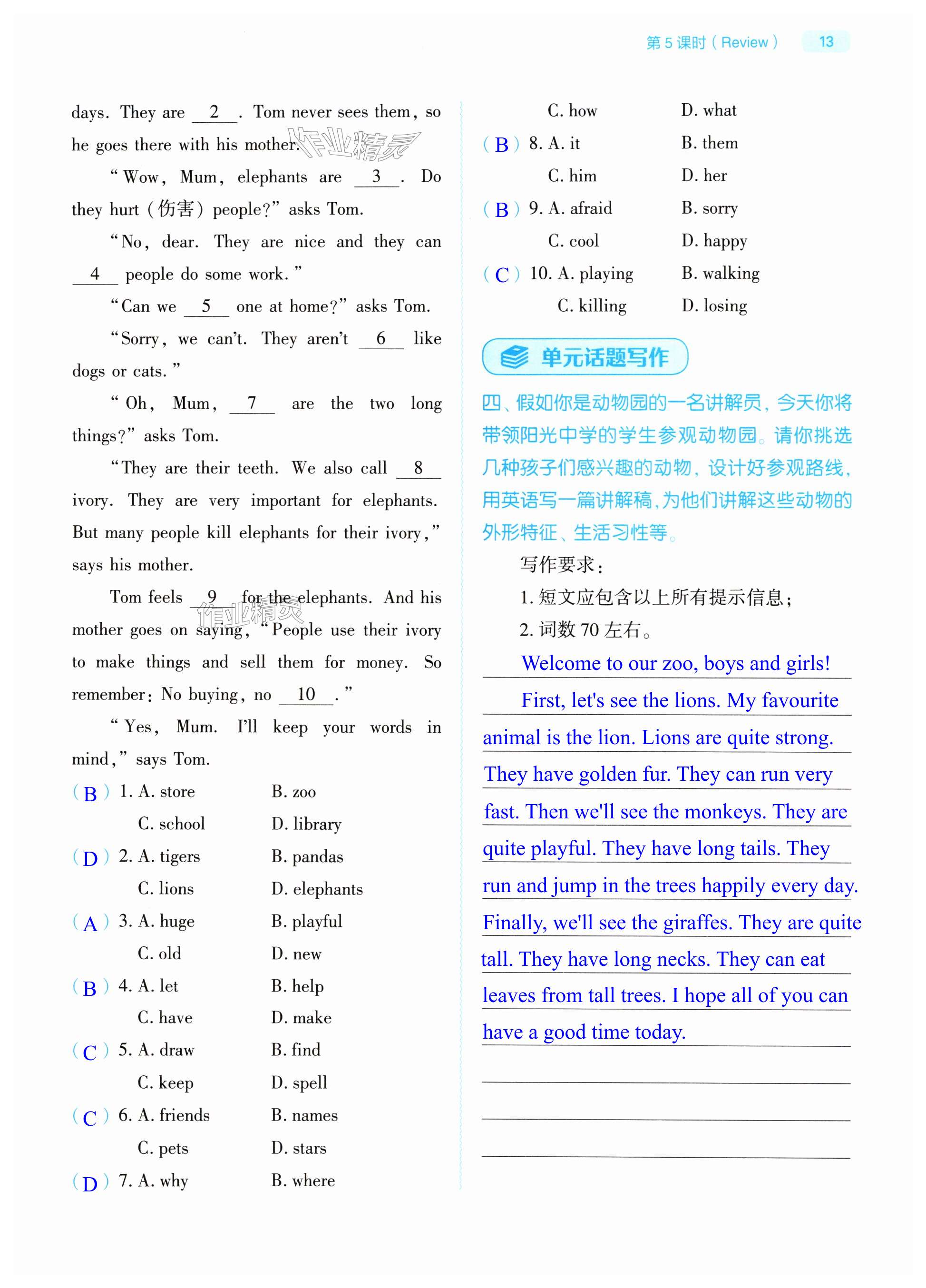 注:目前有些书本章节名称可能整理的还不是很完善,但都是按照顺序排列的,请同学们按照顺序仔细查找。练习册 2025年基础训练大象出版社七年级英语下册人教版 答案主要是用来给同学们做完题方便对答案用的,请勿直接抄袭。